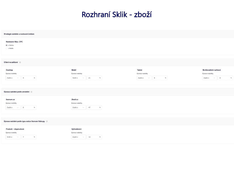 Společnost Seznam nedávno přistoupila k dlouho ohlášené změně v řízení produktových kampaní. Konkrétně jde o přesun možností nastavování CPC pro Zboží.cz a Seznam Nákupy do Skliku.