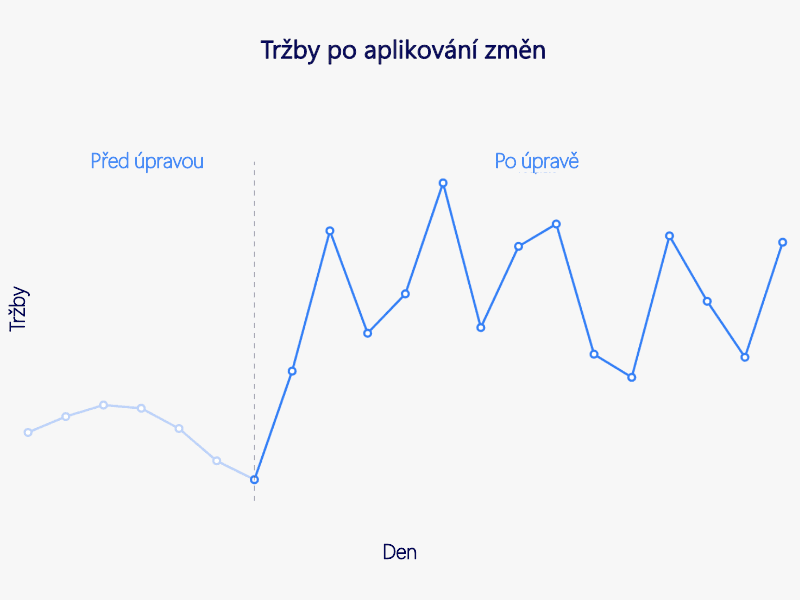 Na základě rychlé analýzy jsme identifikovali problémy v segmentaci produktů a v samotném nastavení multiplikátorů v kampani. Díky optimalizaci na základě podrobných dat získaných přímo ze systému se nám podařilo stabilizovat výkon kampaní a následně navýšit tržby z kanálu Zboží o 25 % při zachování průměrné CPA jako před přechodem do administrace Zboží do Skliku již po prvním týdnu. V následujícím týdnu pak vzrostly tržby o téměř 93 % proti období před změnou a při 14% poklesu CPA. Díky postupnému zvyšování konverzního poměru věříme, že se nám podaří tržby navyšovat i v dalším období.